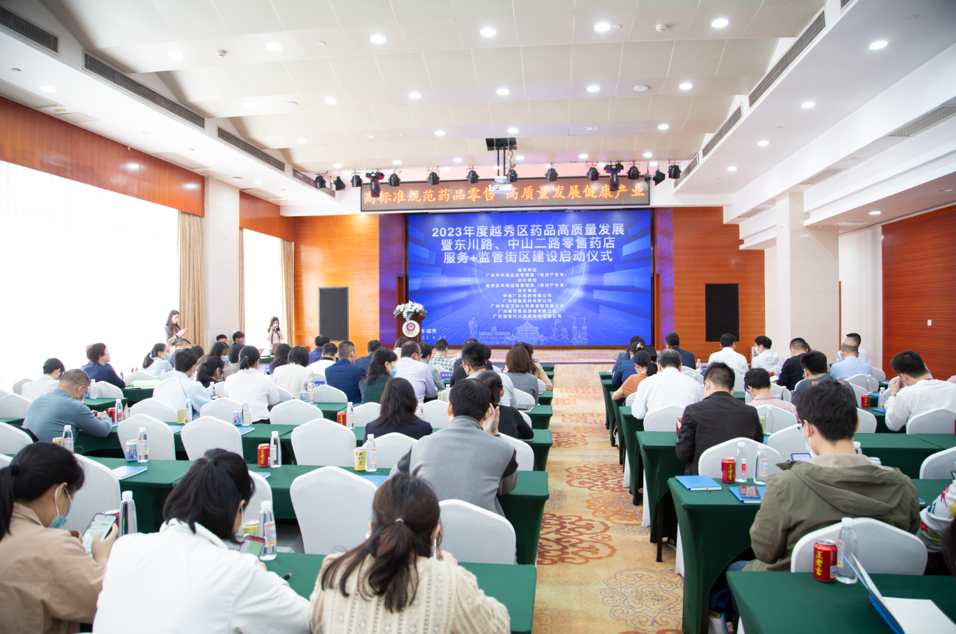 越秀區(qū)副區(qū)長陳烯,越秀區(qū)市場監(jiān)督管理局黨組書記、局長劉中,廣州市市場監(jiān)督管理局藥品總監(jiān)黃海,越秀海關(guān)關(guān)長梁惠其,及市局相關(guān)業(yè)務(wù)處室、越秀區(qū)藥品食品安全和高質(zhì)量發(fā)展委員會(huì)部分成員單位,醫(yī)療機(jī)構(gòu)、流通企業(yè)、零售藥店代表參會(huì)。