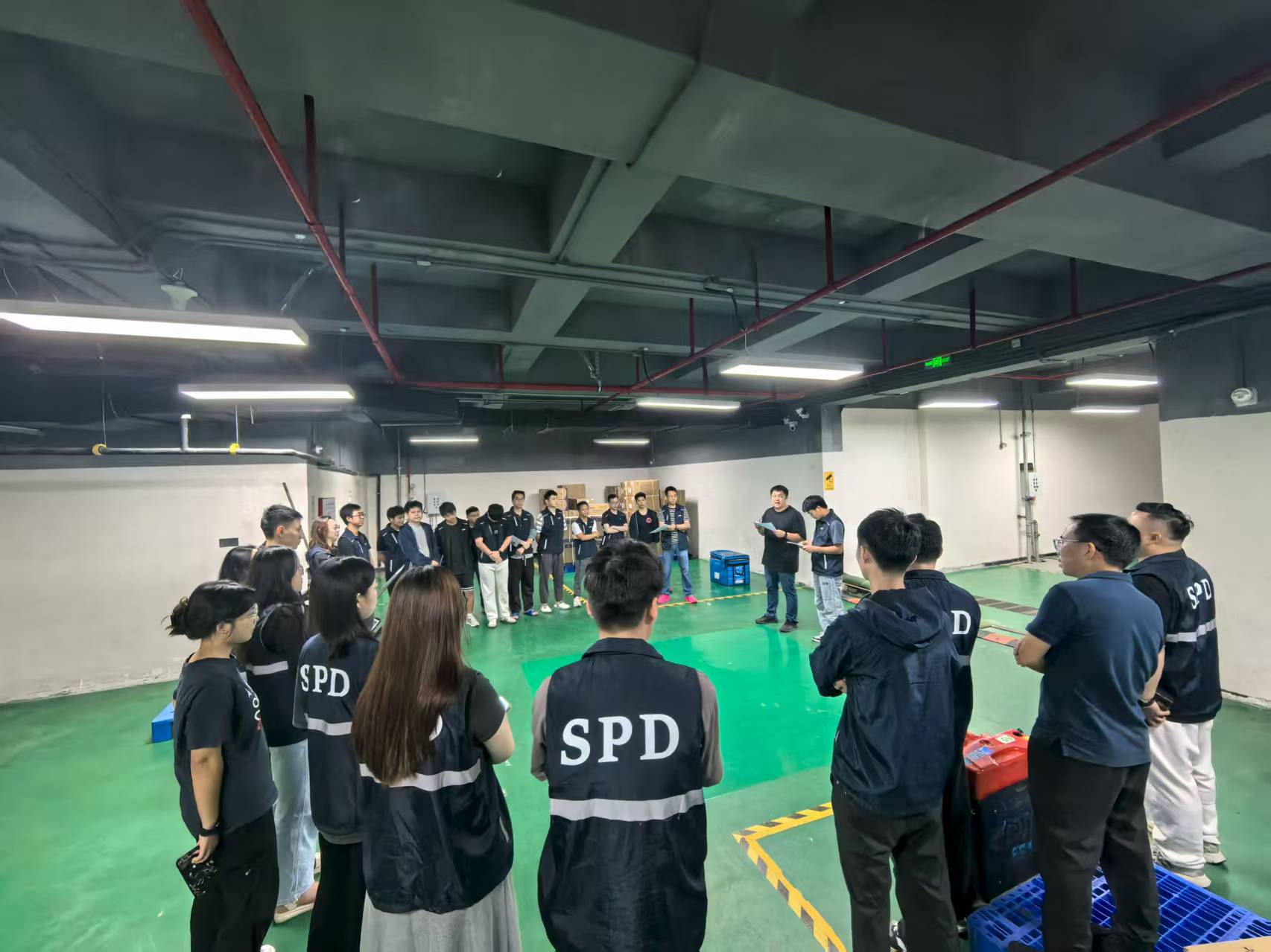 應(yīng)急小組迅速響應(yīng),搶險(xiǎn)救援組快速抵達(dá)現(xiàn)場(chǎng),將被積水威脅的貨物轉(zhuǎn)移至安全區(qū)域,并組織人員堆砌沙包、清理積水,并妥善處置破損物品;警戒疏散組迅速將防洪閘推至預(yù)定位置,對(duì)倉(cāng)庫(kù)門口區(qū)域警戒,檢查并準(zhǔn)備好水泵,引導(dǎo)模擬無(wú)關(guān)人員有序撤離,維持警戒區(qū)域治安;后勤保障組確認(rèn)水淹區(qū)域電源情況,進(jìn)行斷電或恢復(fù)供電操作,同時(shí)向各小組發(fā)放充足的防洪防汛工具及物資,并與醫(yī)院取得聯(lián)系,記錄溝通結(jié)果。最終當(dāng)現(xiàn)場(chǎng)積水清理完畢,貨物安全轉(zhuǎn)移,演練圓滿結(jié)束。