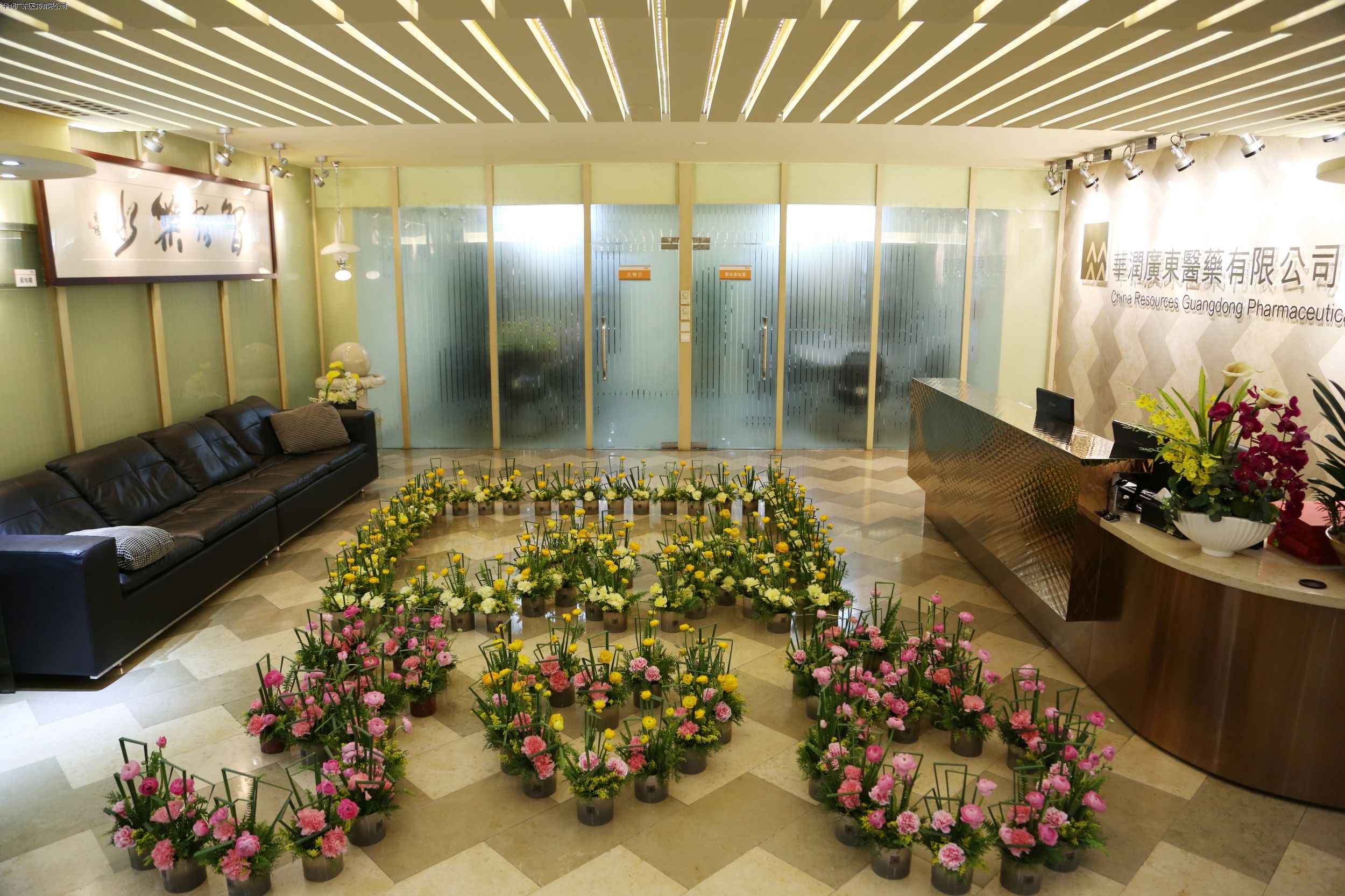 初春的清晨,依然繾綣著幾分寒意,卻絲毫沒有驅(qū)散女職工們內(nèi)心的激動(dòng)和暖意。2018年3月8日,在華潤(rùn)廣東醫(yī)藥有限公司工會(huì)委員會(huì)的精心布置下,為全體女職工準(zhǔn)備的100多盆匠心設(shè)計(jì)的小盆栽被拼湊成華潤(rùn)logo和“3.8”圖案,猶如一個(gè)個(gè)盛裝登場(chǎng)的花仙子,裝點(diǎn)著公司前臺(tái),成為公司最亮麗的節(jié)日風(fēng)景。女職工們被這一波觸不及防的小心思感動(dòng),臉上無不洋溢著如花一般的燦爛笑容。她們齊聚花海,在鮮花的簇?fù)硐潞嫌?,互?zèng)祝福,一派溫馨動(dòng)人。