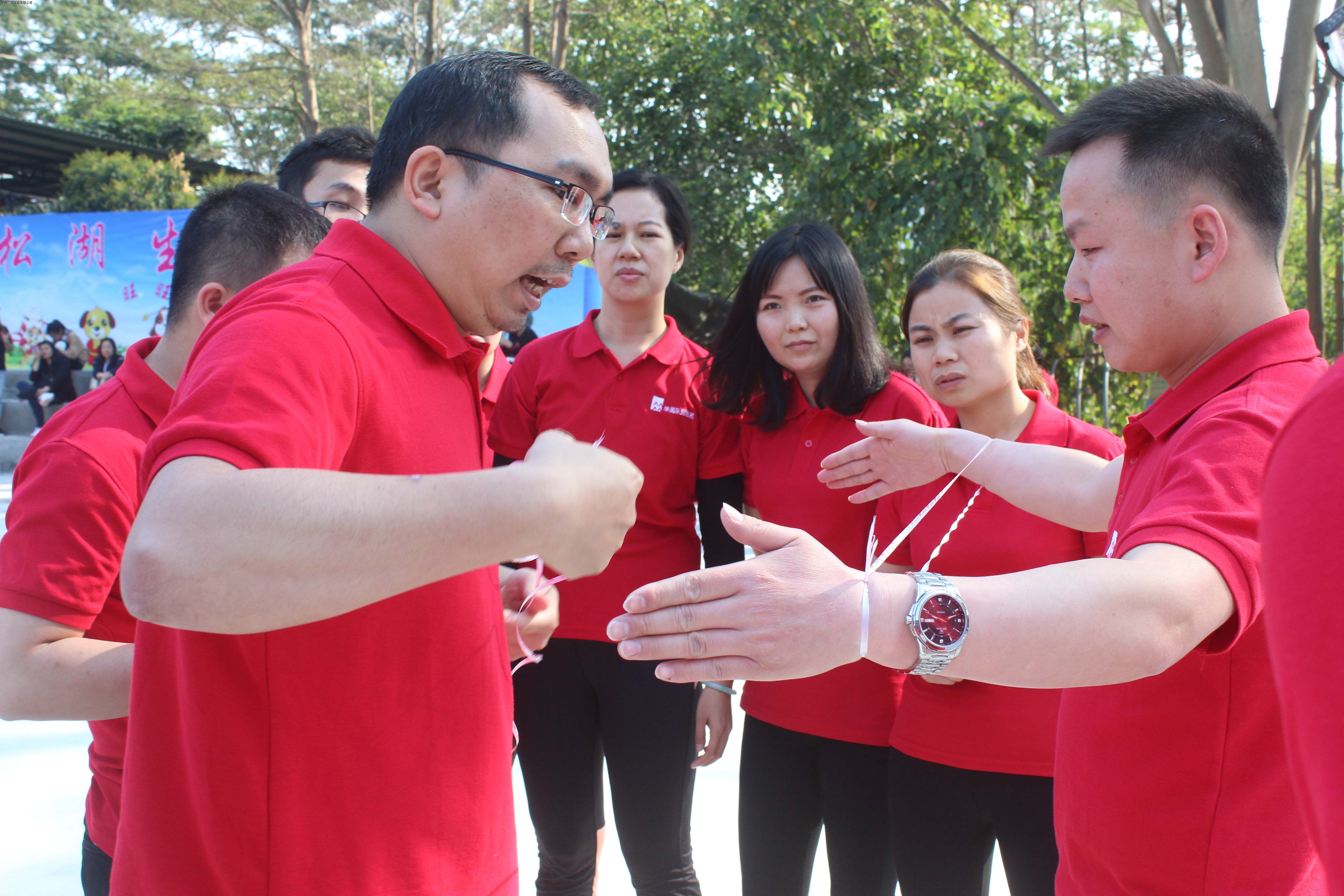 隨后的一個熱身舞蹈讓現(xiàn)場氣氛被徹底調(diào)動起來,隊(duì)員們熱情高漲,團(tuán)建活動進(jìn)入第二個環(huán)節(jié):挑戰(zhàn)160。在160秒內(nèi)一次性完成“解手繩”、“解手環(huán)”、“傳瓶子”、“拍掌喊號”四個項(xiàng)目,這既考驗(yàn)個人智力也挑戰(zhàn)團(tuán)隊(duì)合作能力。面對這幾個難題,現(xiàn)場展開了熱烈的討論,隊(duì)員們集思廣益,各抒己見,嘗試各種不同的方法,也積極學(xué)習(xí)和借鑒其他團(tuán)隊(duì)的做法。經(jīng)過充分的實(shí)踐,各個小組克服困難,總結(jié)出最優(yōu)的方案,先后完成160挑戰(zhàn),其中“中國紅”隊(duì)以84秒的好成績勝出。