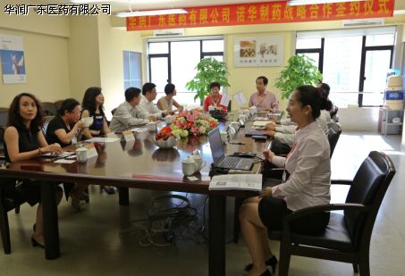 2013年6月27日下午,我司與諾華制藥有限公司在大會(huì)議室舉行了隆重的合作簽約儀式。諾華制藥中國(guó)副總裁邊建蘋(píng)女士、華潤(rùn)廣東醫(yī)藥總經(jīng)理陳威廉先生以及雙方公司代表共20人出席了當(dāng)天的簽約儀式。諾華制藥廣州公司商務(wù)負(fù)責(zé)人曾秀明主持了本次簽約儀式。