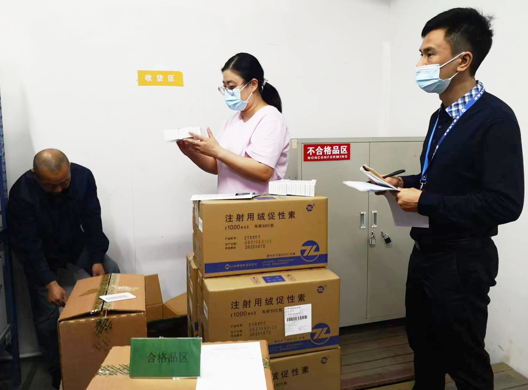 會后,一行領(lǐng)導(dǎo)前往物流中心進行特殊藥品的督導(dǎo)檢查工作。檢查過程中,領(lǐng)導(dǎo)們詳細了解了華潤東莞醫(yī)藥的特殊藥品管理體系及含興奮劑藥品的經(jīng)營管理情況。方副局長指出,務(wù)必嚴格落實國家藥監(jiān)局要求,認識到特殊藥品安全是公共安全的重要組成部分,認真分析研判解決新情況、新問題,提高對風(fēng)險的感知、預(yù)測、防范能力,持續(xù)完善特殊藥品安全管理制度,全力推進特殊藥品安全管理工作,堅持守底線保安全,切實保障人民群眾用藥安全。