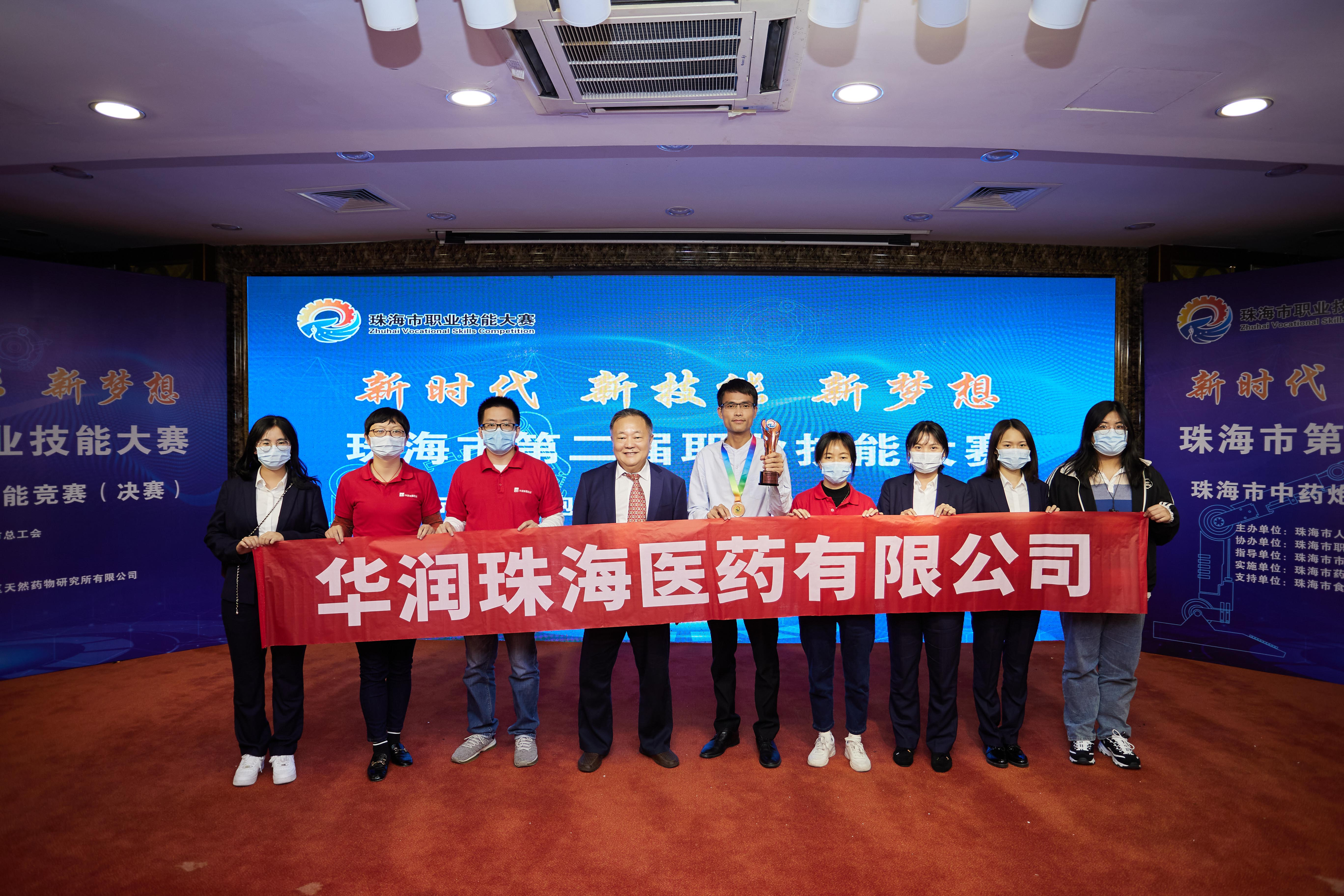 代表華潤(rùn)珠海醫(yī)藥有限公司參賽的執(zhí)業(yè)中藥師—?jiǎng)⒋笊缭诟?jìng)賽中沉著應(yīng)戰(zhàn),以扎實(shí)的專業(yè)知識(shí)及精湛的技能獲得“珠海市第二屆職業(yè)技能大賽”個(gè)人賽季軍。此外,公司為了表達(dá)對(duì)劉大社此次參賽的支持以及鼓勵(lì),公司組織了啦啦隊(duì)隊(duì)員到比賽現(xiàn)場(chǎng)為參賽同事劉大社加油打氣,也充分展現(xiàn)了華潤(rùn)珠海醫(yī)藥團(tuán)結(jié)一心的集體風(fēng)貌。