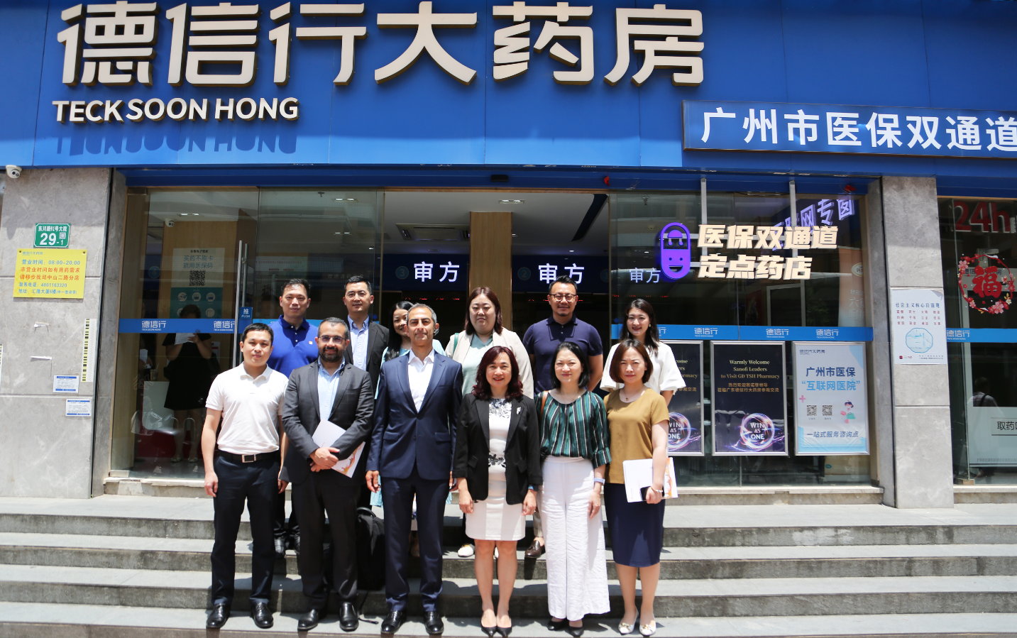 在廣東德信行大藥房旗艦店及新特藥店,賽諾菲全球管理團(tuán)隊(duì)一行先后了解了專業(yè)藥店優(yōu)越的地址位置與周邊醫(yī)療資源,參觀了藥店內(nèi)部根據(jù)不同患者需求設(shè)置的專業(yè)化功能分區(qū),并對(duì)“港澳藥械通”項(xiàng)目進(jìn)展進(jìn)行深入討論。
