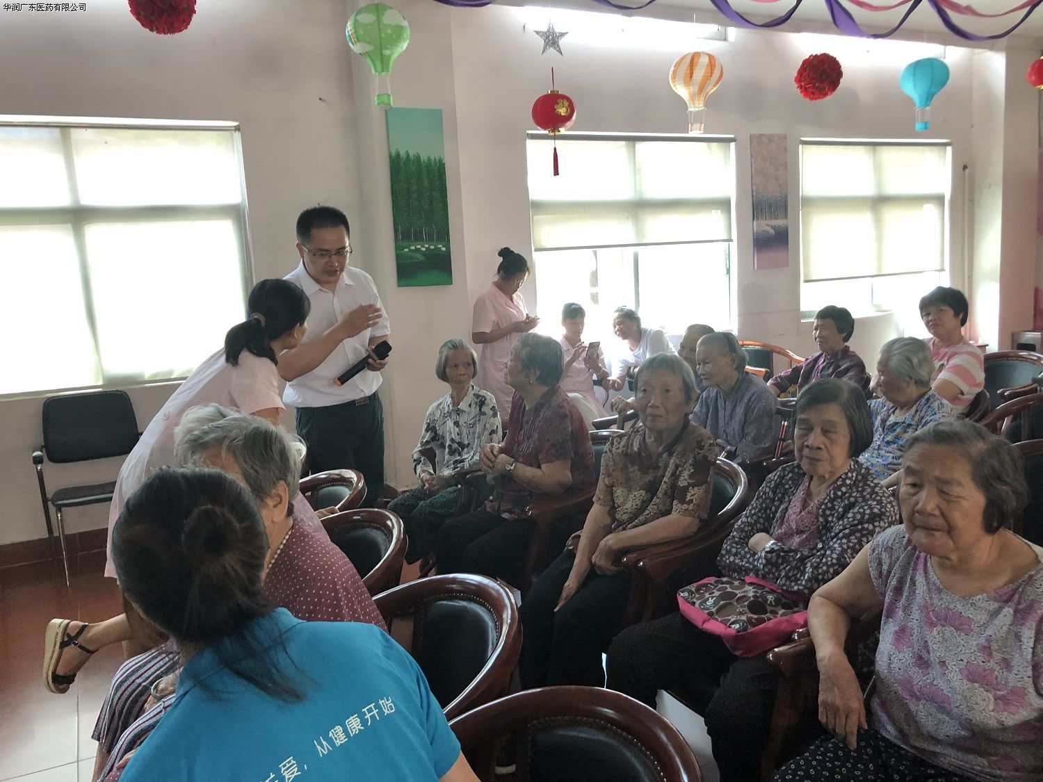 在養(yǎng)老院活動(dòng)室內(nèi),來(lái)自德信行大藥房深圳翠竹分店的執(zhí)業(yè)藥師饒展泉為長(zhǎng)者們做了主題為 “正確降糖 輕松注射”的糖尿病胰島素注射講座。講座以淺顯易懂的方式,向長(zhǎng)者們介紹了糖尿病及胰島素注射的相關(guān)知識(shí)。講座結(jié)束后,長(zhǎng)者們向饒藥師咨詢(xún)?nèi)粘I钪械谋=?wèn)題,包括最近的身體狀況和用藥注意事項(xiàng)等,饒藥師耐心地為長(zhǎng)者們一一解答。同時(shí),黨員和志愿者們也與老人們展開(kāi)了面對(duì)面交流,了解老人們的生活狀況,幫助他們整理生活用品,并叮囑他們保重身體,保持心情愉快。