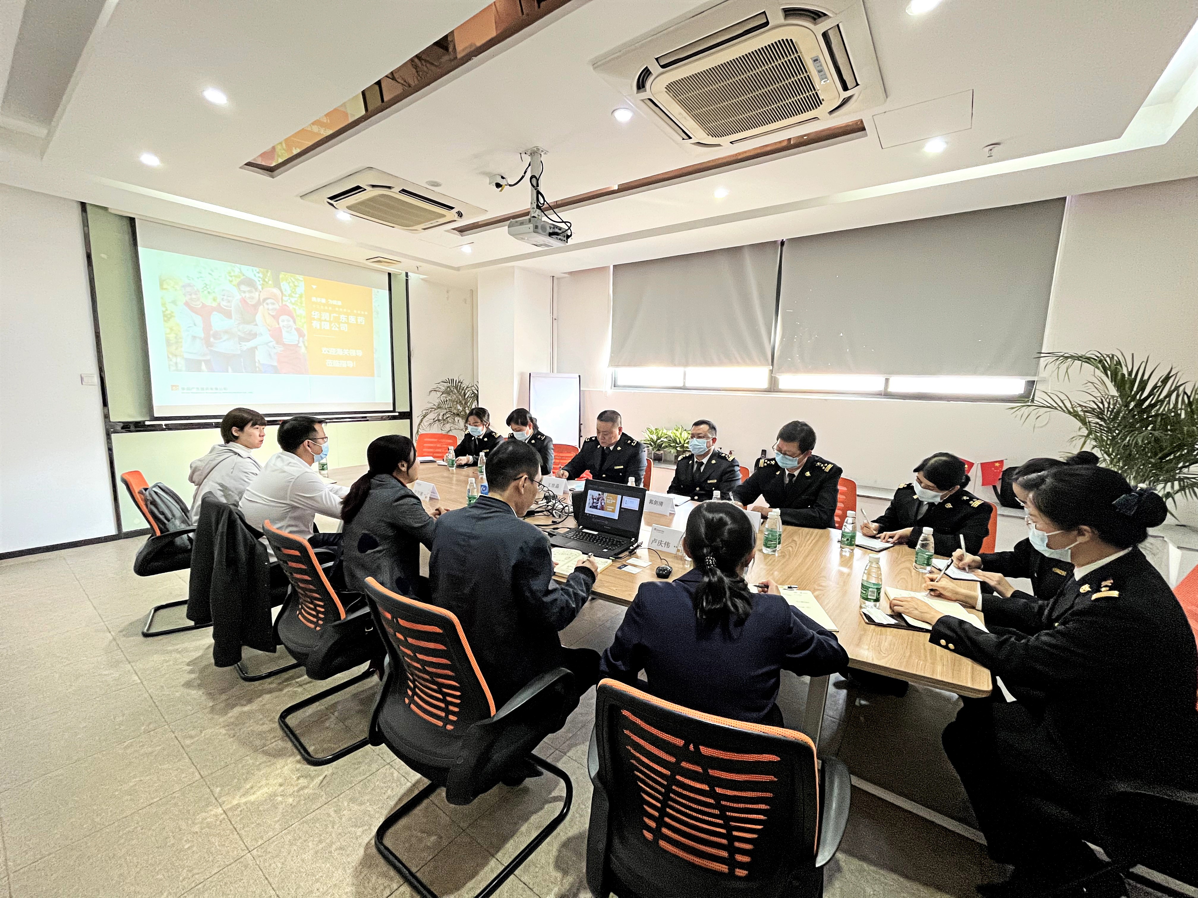 2021年12月22日,廣州市花都海關(guān)關(guān)長王世晶、紀檢組組長董麗震、副關(guān)長郭劍清、副關(guān)長梁文鋒一行9位領(lǐng)導(dǎo)到訪華潤廣東醫(yī)藥有限公司(以下簡稱:華潤廣東醫(yī)藥)花都物流中心,對企業(yè)業(yè)務(wù)運營、進口業(yè)務(wù)發(fā)展展開調(diào)研。華潤醫(yī)藥商業(yè)華南區(qū)域總經(jīng)理、華潤廣東醫(yī)藥總經(jīng)理霍佩瓊、國際進口部分管領(lǐng)導(dǎo),進口業(yè)務(wù)、物流業(yè)務(wù)相關(guān)人員共同參與。
